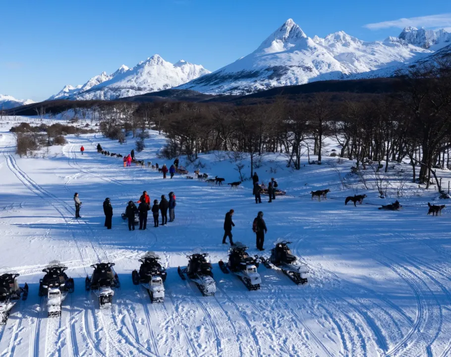 Viví un día épico en la nieve: caminata con raquetas, trineo con huskies, motos de nieve y almuerzo en un domo en el corazón del bosque fueguino.