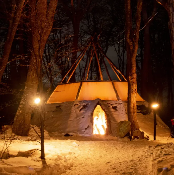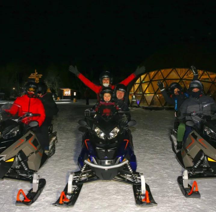 Una noche mágica en los bosques nevados de Tierra del Fuego: raquetas, motos de nieve y una cena al fuego bajo las estrellas.