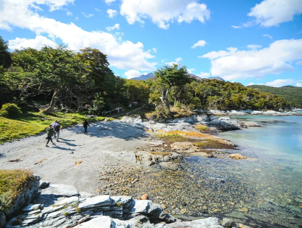 Descubre la magia del Parque Nacional Tierra del Fuego con una caminata costera y navegación en canoas inflables hacia la icónica Bahía Lapataia.