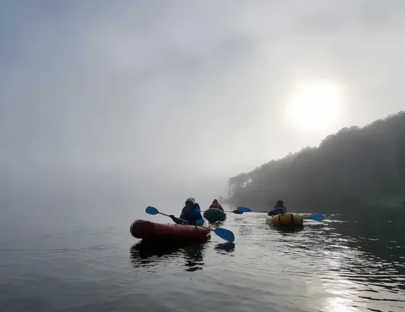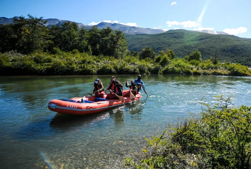Trekking entre bosques nativos y miradores con vistas épicas al Lago Escondido y Fagnano, seguido de una navegación en botes inflables por aguas cristalinas.
